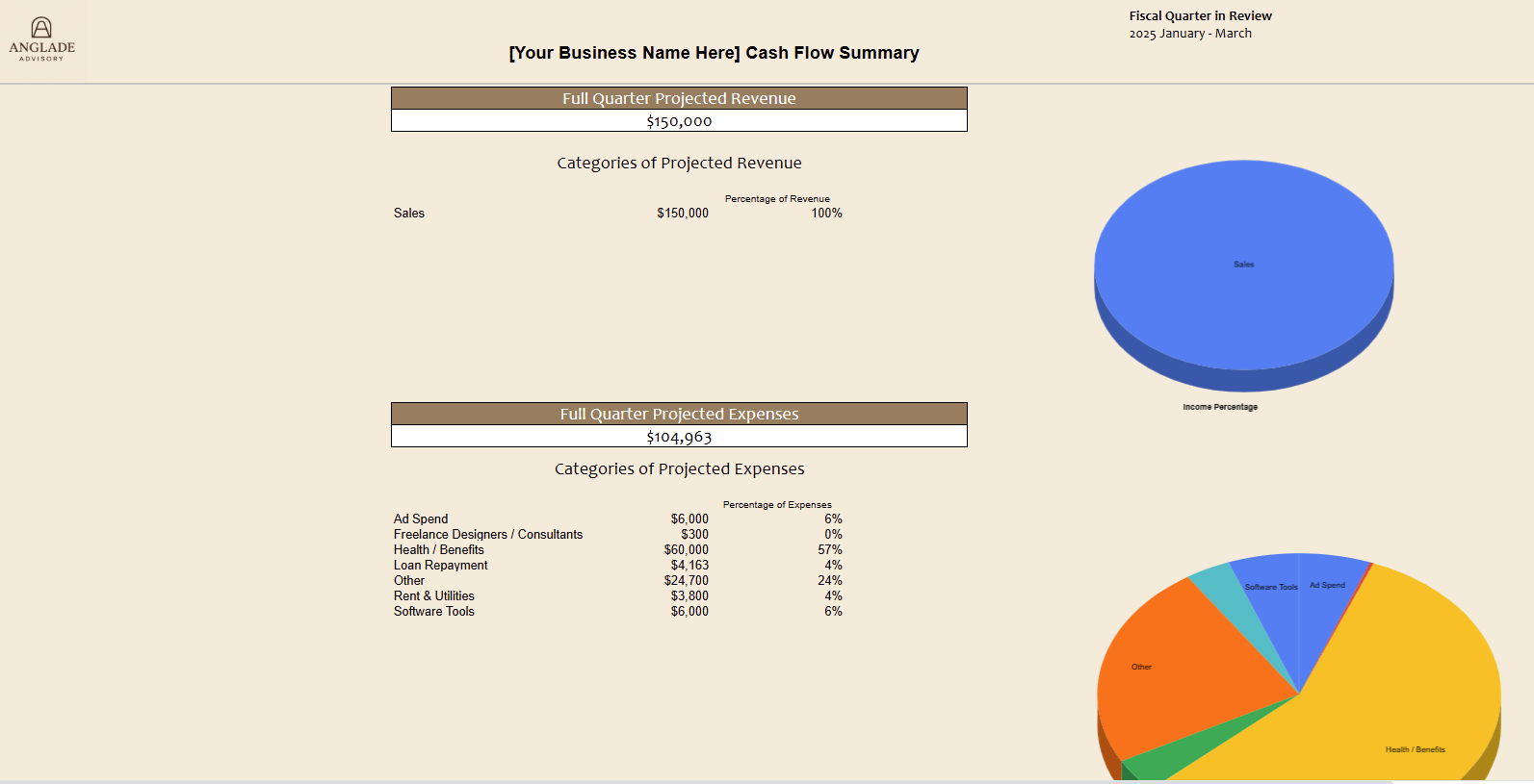 We look at your real numbers and build a dashboard that shows exactly what to spend, save, and set aside over the next three months.